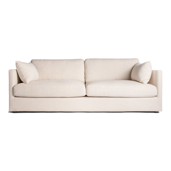 The Bradley Sofa is designed with an extra-deep seat, creating a generous and comfortable place to relax. Each sofa includes a pair of bolster cushions, adding support without interrupting the clean lines. The arms are slim and tailored, giving the sofa a refined silhouette.