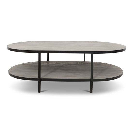 You’ll be thrilled to welcome the Jude coffee table into your living room. The table sports two soft grey stained wood surfaces, as well as rounded edges that contrast nicely with the metal frame to create a contemporary table.