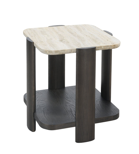 Like its sister coffee table, the Kortez side table features unique design elements that make it stand out from the crowd. Solid travertine marble top and dark wood base work together perfectly to create the Kortez.