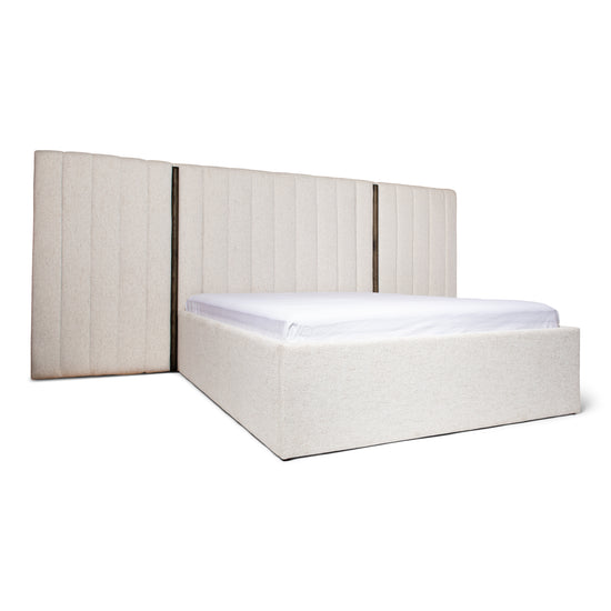 The Rebekah Bed is designed as a statement piece for the primary bedroom. The oversized headboard extends behind the nightstands, measuring 345 cm for the 5 ft size and 375 cm for the 6 ft.