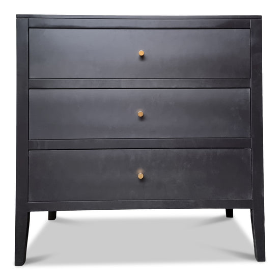 The Drawers are on metal runners and the Darcy range comes fully assembled from the factory. Available in dark Ebony or pale grey with a brass handle.